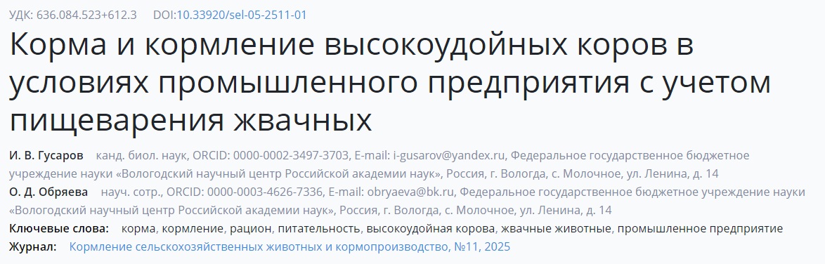 С материалами статьи можно ознакомиться по ссылке: https://panor.ru/articles/korma-i-kormlenie-vysokoudoynykh-korov-v-usloviyakh-promyshlennogo-predpriyatiya-s-uchetom-pishchevareniya-zhvachnykh/117531.html#