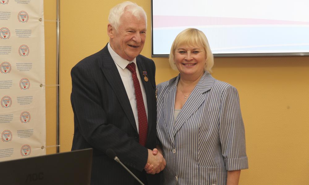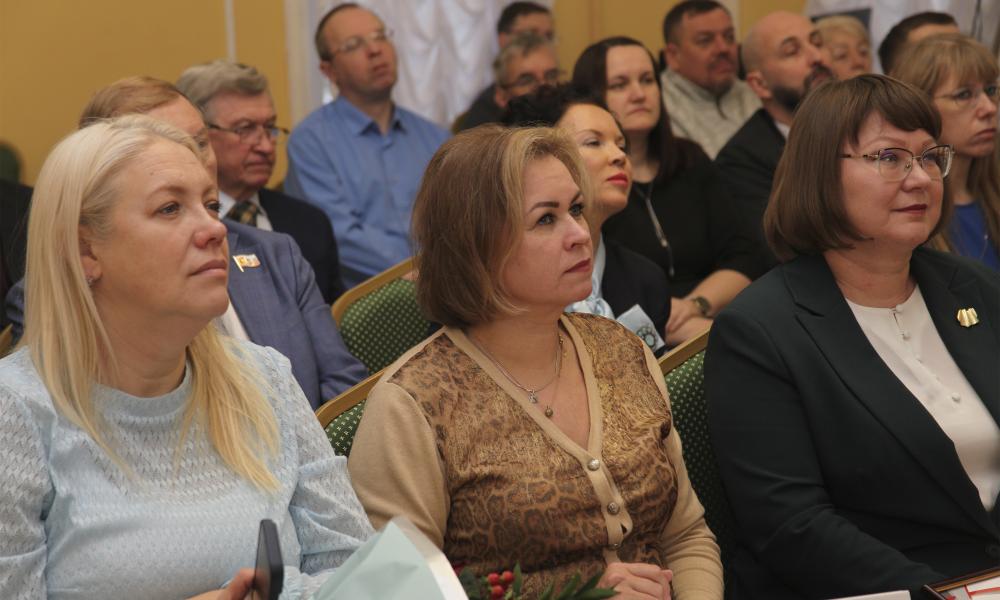 Председатель Вологодской областной организации Общероссийского Профсоюза образования, первый заместитель председателя Общественной палаты Вологодской области С.В. Павлушкова вручила поздравительный адрес от Общественной палаты Вологодской области и наградила В.А. Ильина медалью «За заслуги перед обществом».