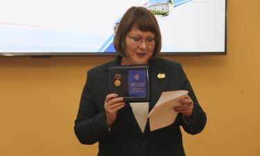Заместитель министра образования Вологодской области Л.В. Святышева вручила поздравительный адрес от Правительства Вологодской области и медаль от Министерства науки и высшего образования РФ «За вклад в реализацию государственной политики в области образования и научно-технологического развития» (Приказ от 11.08.2025 № 625 к/н).