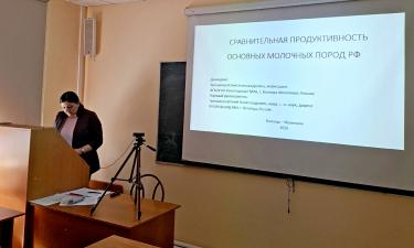В секции «Зоотехния» под научным руководством к.с.-х.н. доцента Третьякова Е.А. приняли участие четверо студентов-магистрантов, закреплённых за базовой кафедрой «Научно-практическое обеспечение животноводства»: Копытова Е.В. «Сравнительная характеристика кур кроссов «Хайсекс коричневый» и «Хайсекс белый», Третьякова Ю.А. «Сравнительная продуктивность основных молочных пород РФ», Хамова М.В. «Поголовье КРС в племенных хозяйствах Северо-Запада России», Серов А.В. «Контроль уровня кормления коров биохимическими показателями крови».