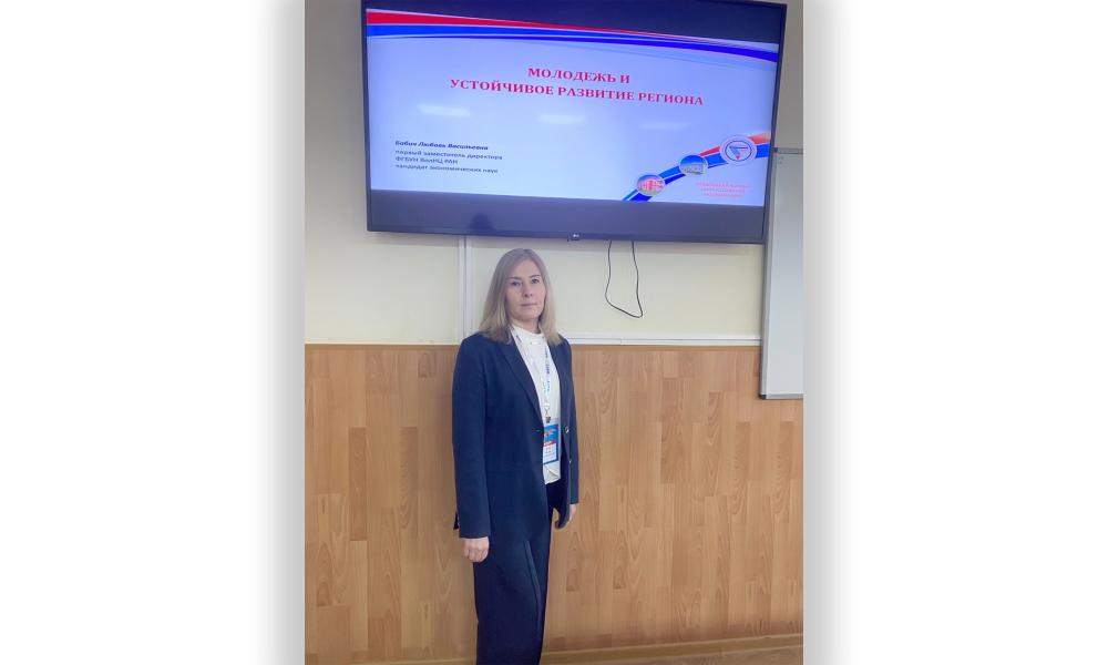 ВолНЦ на мероприятии представила первый заместитель директора к.э.н. Л.В. Бабич. В докладе «Молодежь и устойчивое развитие региона» были раскрыты механизмы участия молодого поколения в экономических и социальных процессах. Отмечено, что именно инициативность и профессиональный потенциал молодежи являются ключевыми драйверами долгосрочного процветания территорий. Представленные результаты актуальных исследований наглядно продемонстрировали, как академические знания студентов могут быть интегрированы в реальные стратегии развития региона для решения глобальных вызовов.